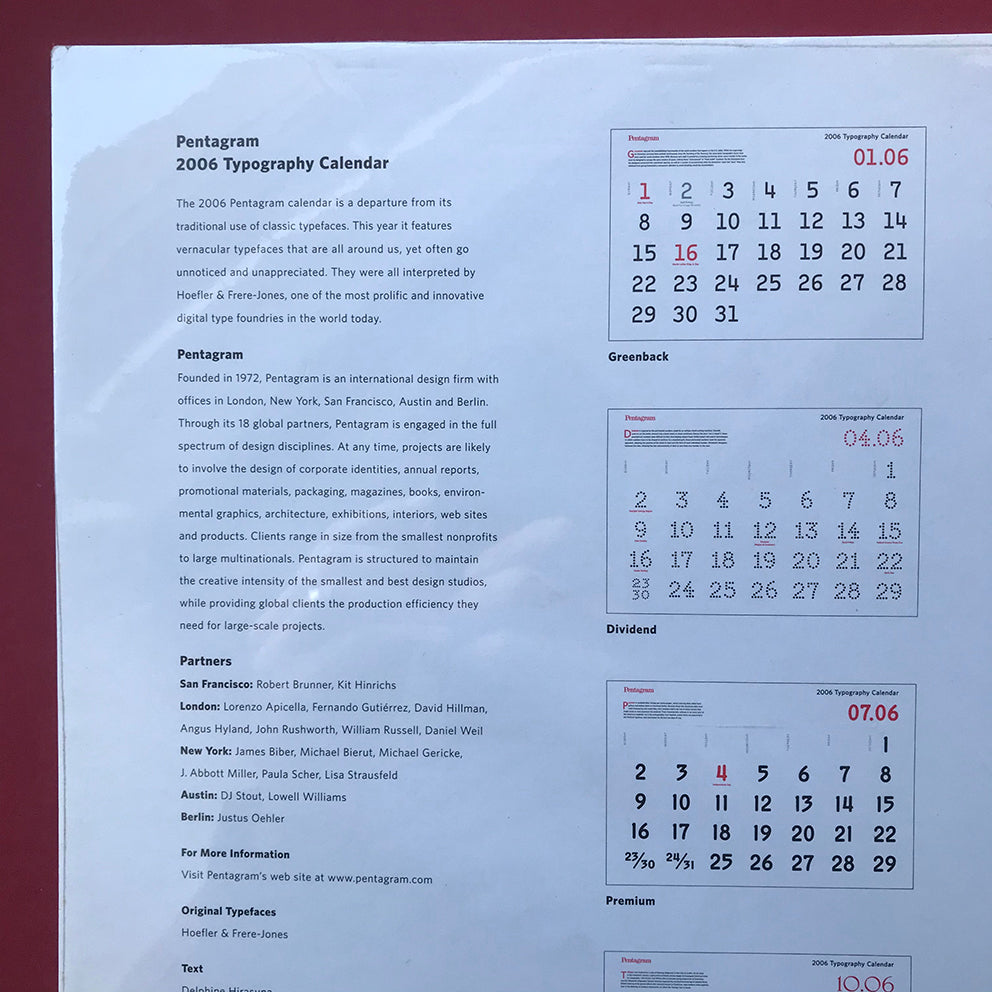 Pentagram 365, Typography Calendar Kit Hinrichs โ The Print Arkive